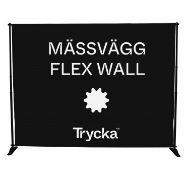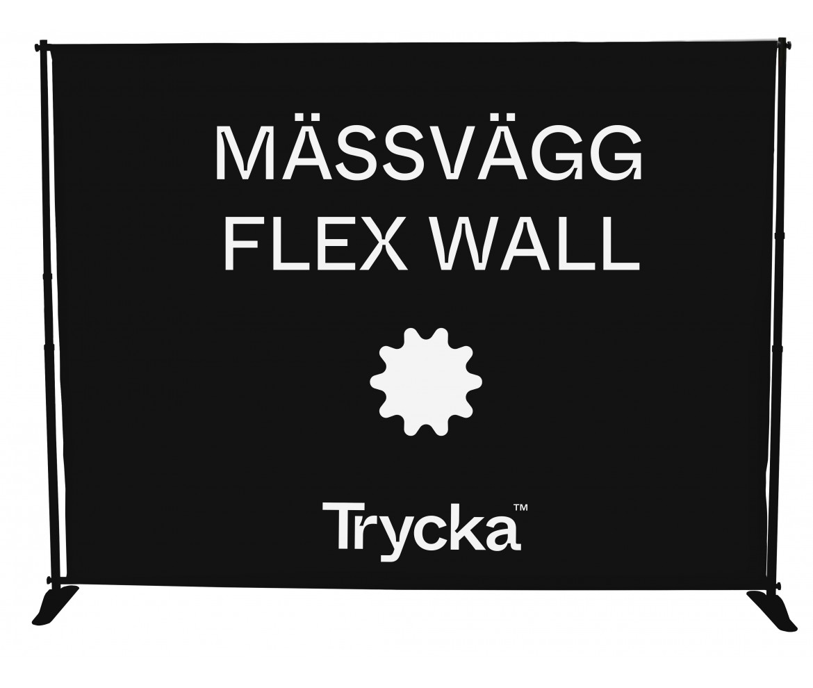 Mässvägg Flex Wall är den flexibla monterväggen med teleskopisk ram vilket gör den inställbar från 81cm till 225cm i höjdled. På bredden är den inställbar från 160cm till 290cm vilket gör den mycket användbar i de flesta sammanhang. Väggen är en utmärkt profileringsyta både på mässor och vid resande. Ditt motiv trycks på en högkvalitativ textilduk som fästs runt ramen. Väggen går mycket snabbt och enkelt att montera. Den står på stabila fötter av metall och levereras i en smidig bärväska.